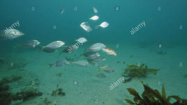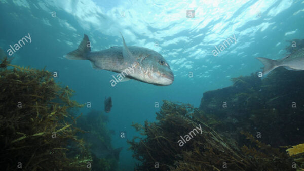 Big snapper Pagrus auratus descending among rocks