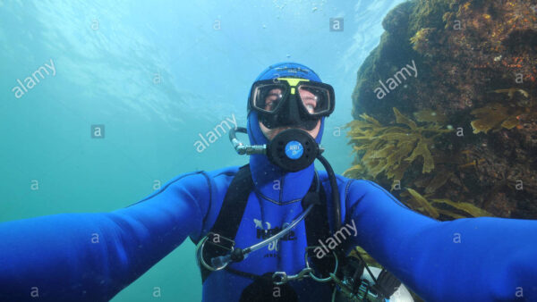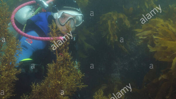 Scuba diver among sea weeds