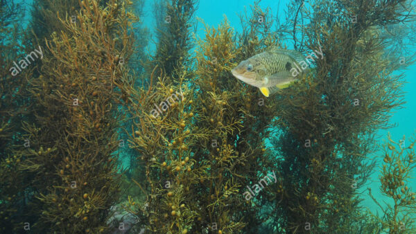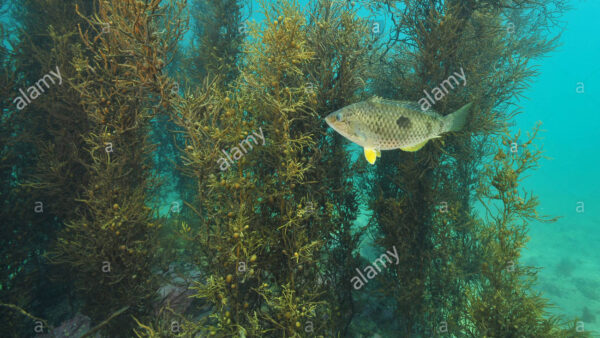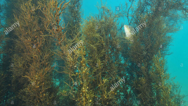Spotty wrasse in brown sea weeds