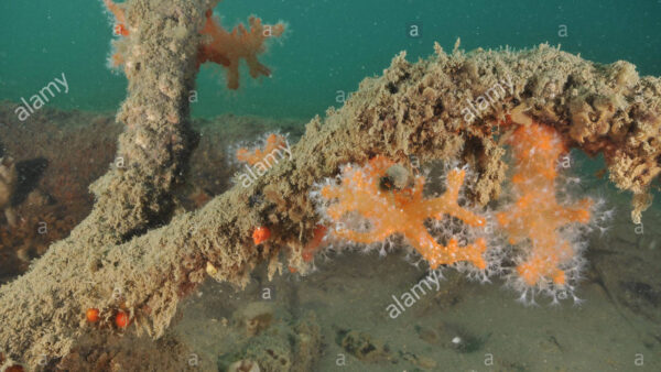 Submerged tree with soft coral colonies