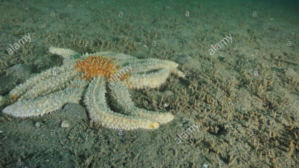 Sea star Coscinasterias calamaria on flat muddy bottom
