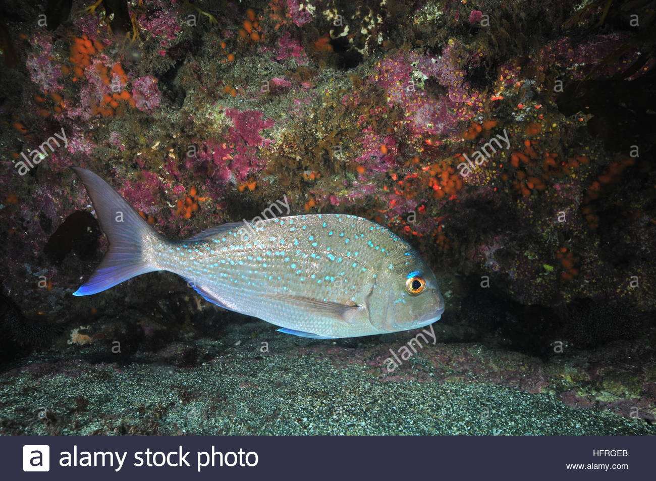 / Australasian snapper in front of rocky wall