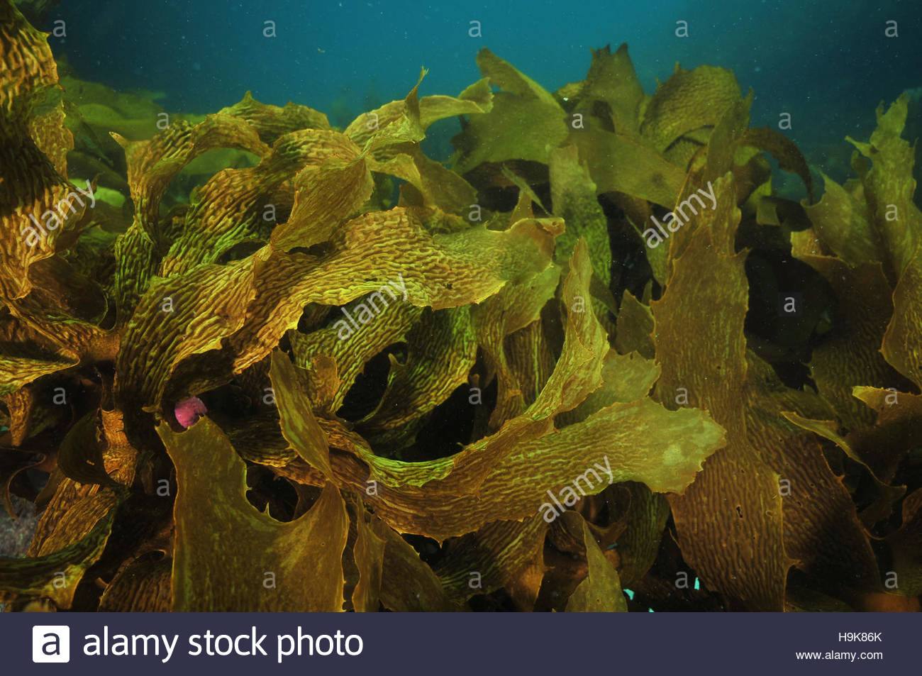 / curling fronds of brown stalked kelp